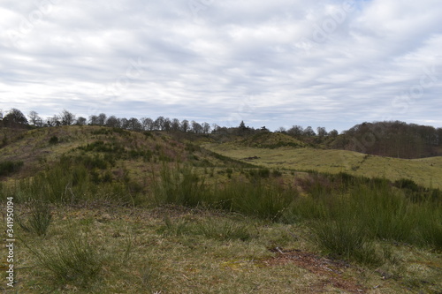 © Dennis, Fototapeta premium Hills, trees and clouds in early spring in Denmark
