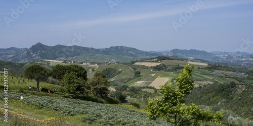 Obraz premium Hilly landscape is used for agriculture, Emilia-Romagna, Italy, Europe