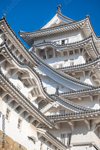 Fototapeta premium Himeji castle, Elegant Asian architecture against blue sky at Himeji, Japan