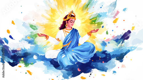 © Graphic Dude, Naklejka premium Hindu God Radha Rani Colorful Abstract Painting Divine Love Spirituality Krishna Janmashtami Holi Festival Meditation Peace Harmony Religious Artwork Indian Mythology Deity Worship Traditional Art