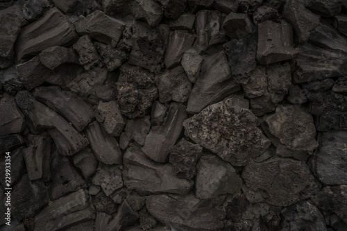 © Fotoschlick, Fototapeta premium Hintergrund Steine Schlacke Hochofenschlacke sehr dunkel low-key - Background stones slag blast furnace slag very dark low-key