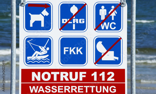© DOC RABE Media, Fototapeta premium Hinweis Schild am Strand