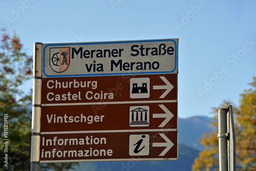 Obraz premium Hinweisschilder Meraner Straße Churburg