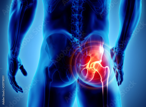 Fototapeta premium Hip painful skeleton x-ray, 3D illustration.