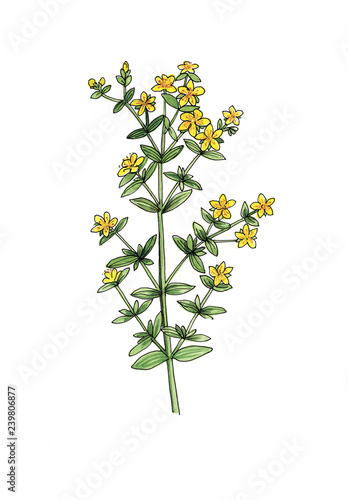 © Artemisss, Obraz premium Hipericum flowers on white background.