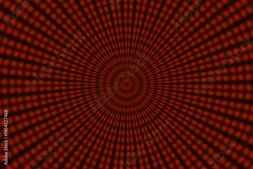 © Henryk Guziak, Naklejka premium Hipnotyzujący wzór koncentryczny z czerwonych kropek na czarnym tle, abstrakcyjna grafika z efektem głębi i iluzji optycznej.