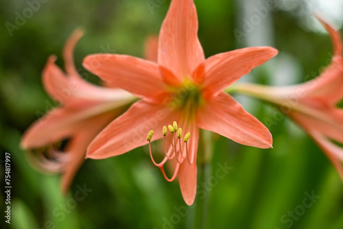 Fototapeta premium Hippeastrum striatum, or striped Barbados lily in the garden