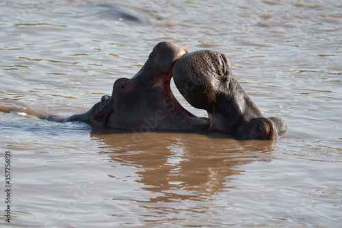 © rocchas75, Obraz premium Hippo Hippopotamus amphibious Africa Safari Portrait Water