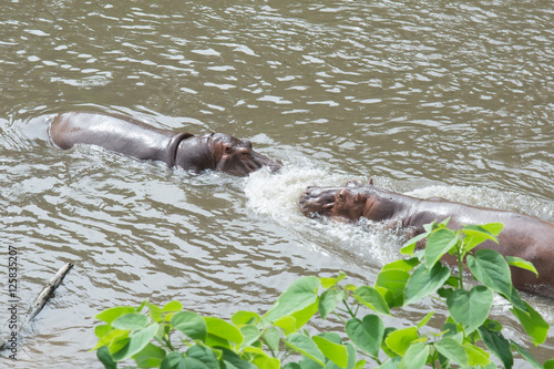 Obraz premium Hippo (Hippopotamus amphibius) fighting in the water