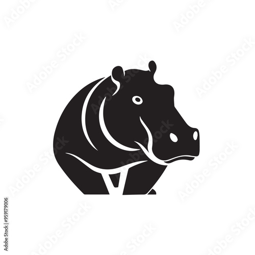 © Anton HUKB30f, Naklejka premium hippo in cartoon, doodle style . Image for t-shirt, web, mobile apps and ui. Isolated 2d vector illustration in logo, icon, sketch style, Eps 10, black and white. AI Generative