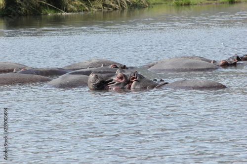 © Allison, Fototapeta premium Hippo lifts face out of water in Ngorongoro Crater, Tanzania