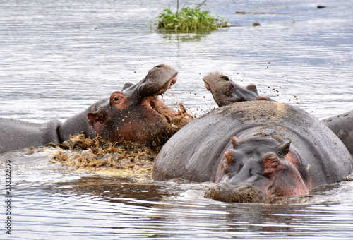 © Takashi, Fototapeta premium Hippo opening mouth in Ngorongoro Conservation Area, Tanzania