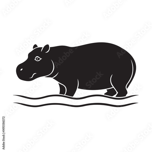 Fototapeta premium Hippo Wading In Water Scene Silhouette