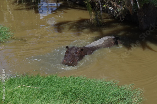 © sissoupitch, Obraz premium Hippopotame dans l'eau en Afrique