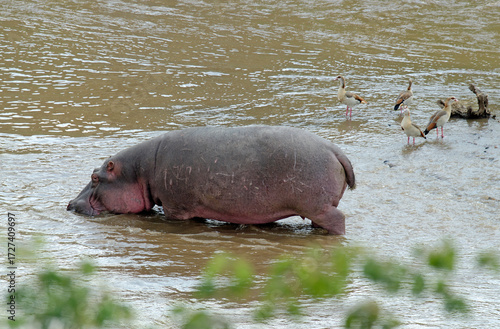 Fototapeta premium hippopotame, hippopotamus amphibius, Réserve de Masai Mara, Afrique