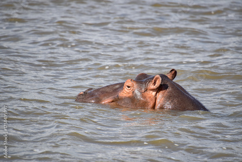 Fototapeta premium Hippopotamus bathing in the river near Saint Lucia in South Africa