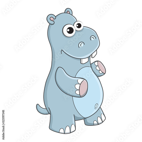 © KidLand, Fototapeta premium Hippopotamus. Cute Young Hippo isolated on white background. Zoo animal cartoon character. Education card for kids learning animals. Logic Games for Kids. Vector illustration in cartoon style.