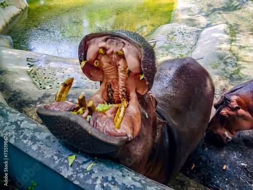 © Didier Bottin, Fototapeta premium Hippopotamus Eating Near a River