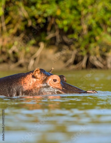 © Faruq, Fototapeta premium Hippopotamus head, river, African habitat