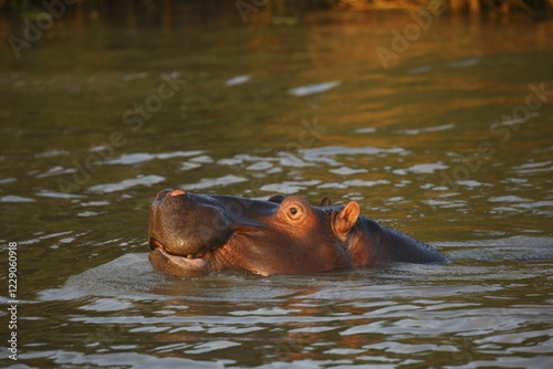 © Justus de Cuveland/imageBROKER, Fototapeta premium Hippopotamus, (Hippopatamus amphibius) in the evening light in water, Hippopotamus, iSimangaliso Wetland Park, National Park, Kwazulu Natal, South Africa, Africa