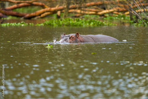 Fototapeta premium Hippopotamus (Hippopotamus amphibius) partially submerged in water, Lake Naivasha, Kenya