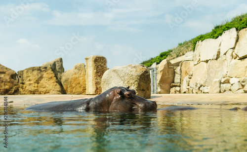 © Irina84, Fototapeta premium Hippopotamus in the water looking over the surface.