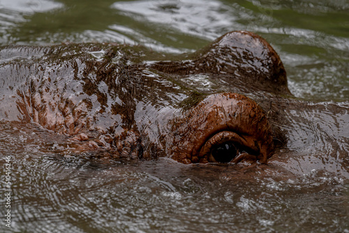 © Heying HUA, Obraz premium Hippopotamus in water. Portrait of hippopotamus amphibious. Hippo. Common hippopotamus. River hippopotamus.