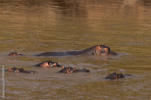 © Dr Ajay Kumar Singh, Fototapeta premium Hippopotamus lying in the river at Masai Mara, Kenya