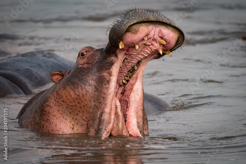 © Nick Dale, Fototapeta premium Hippopotamus opening mouth beside another in pool