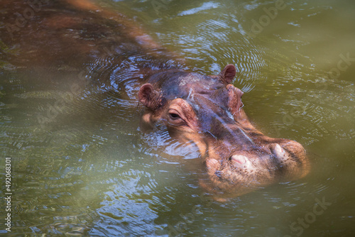 Obraz premium Hippopotamus, or hippo, mostly herbivorous mammal in water