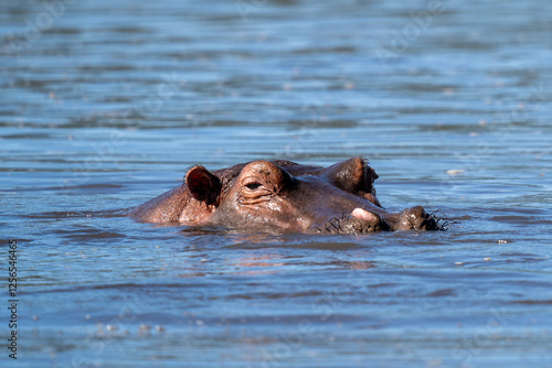© Mustafa, Fototapeta premium Hippopotamus Partially Submerged in Water