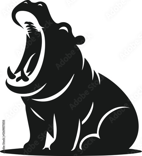 © MstSumi, Obraz premium Hippopotamus silhouette animal vector