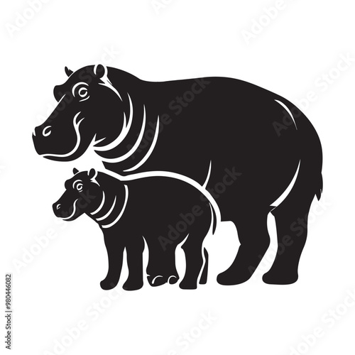 © Shineoxstock, Obraz premium Hippopotamus Silhouette design, Hippopotamus vector illustration in black and white