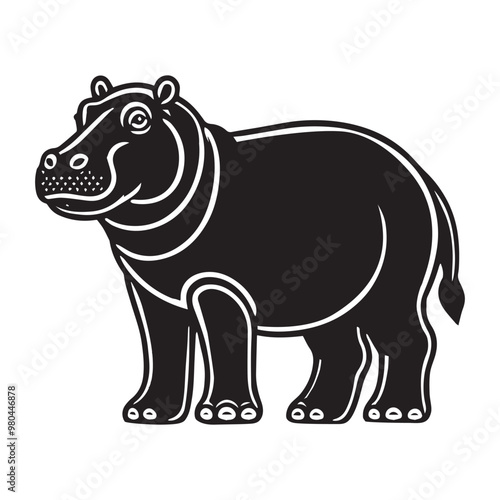 © Shineoxstock, Obraz premium Hippopotamus Silhouette design, Hippopotamus vector illustration in black and white