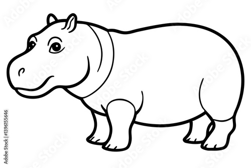 © kanchanrani, Fototapeta premium hippopotamus silhouette line art vector illustration