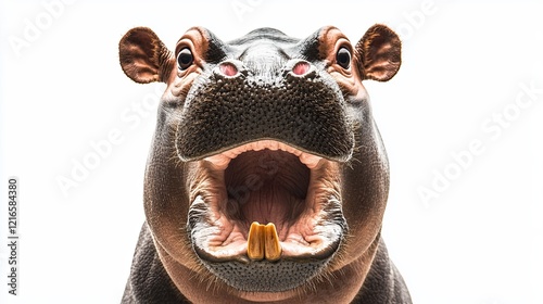 © Alexander LW, Naklejka premium hippopotamus. surprised on isolated white background, real image. close up