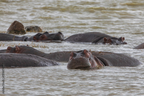© Jonathan W. Cohen , Fototapeta premium Hippopotamuses in lake