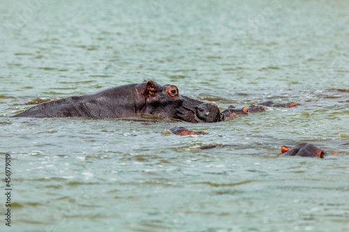 Fototapeta premium Hippos having a bath in Kazinga Channel, Queen Elizabeth National Park, Uganda