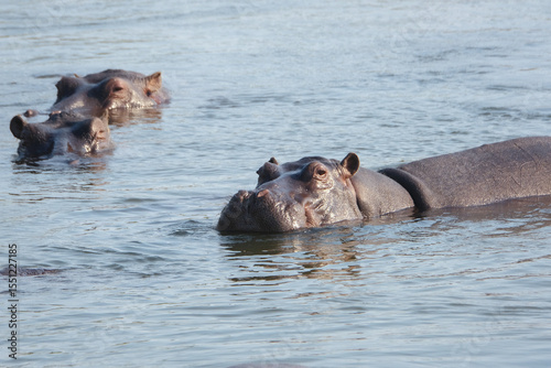 Fototapeta premium Hippos partially submerged in the Okavango River, between Namibia and Angola,...