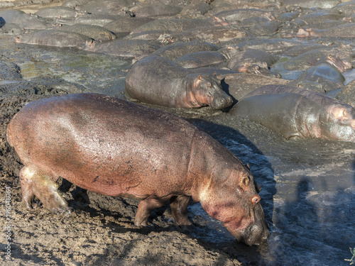 © travelview, Fototapeta premium hippos relax at a water hole in the serengeti