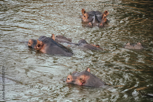 Fototapeta premium Hippos swim gracefully, Masai Mara Reserve, Kenya
