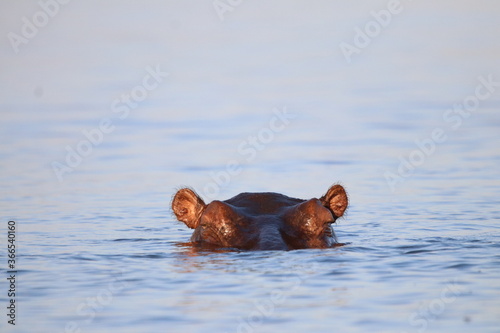Fototapeta premium Hippos swimming and playing by the Chobe River in Botswana