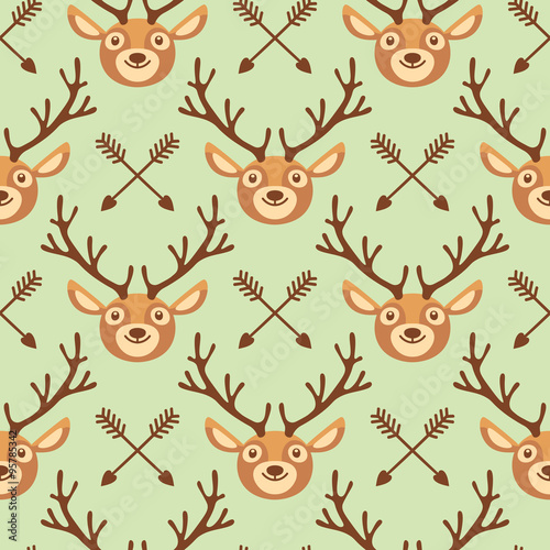Obraz premium Hipster seamless pattern with deer and arrows.
