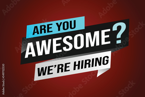© Flow, Fototapeta premium hiring recruitment Join now design for banner poster. are you awesome? lettering with geometric shapes lines. Vector illustration typographic. Open vacancy design template modern concept