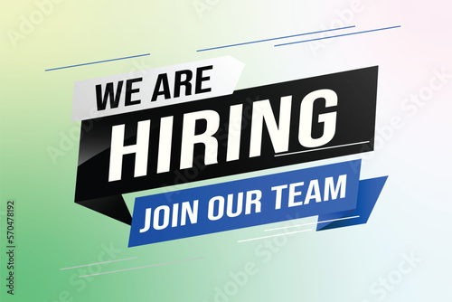 © Flow, Obraz premium hiring recruitment Join now design for banner poster We are hiring lettering with geometric shapes lines. Vector illustration typographic. Open vacancy design template modern concept