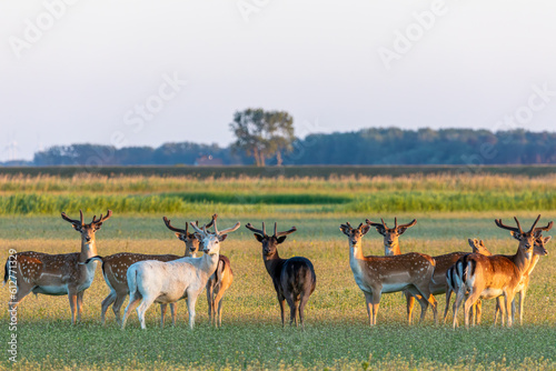 Naklejka premium Hirsche, Damhirsche auf einer Wiese be Zingst an der Ostsee.