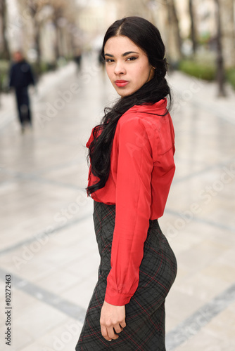 © javiindy, Fototapeta premium Hispanic stewardess in urban background