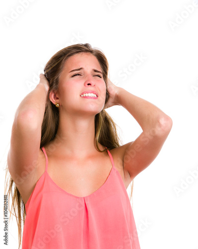 © rigelp, Fototapeta premium Hispanic young woman with Desperate and concern expression