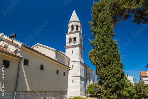 Fototapeta premium Historic architecture in Biograd, bell tower of St. Stosija church, Dalmatia,...