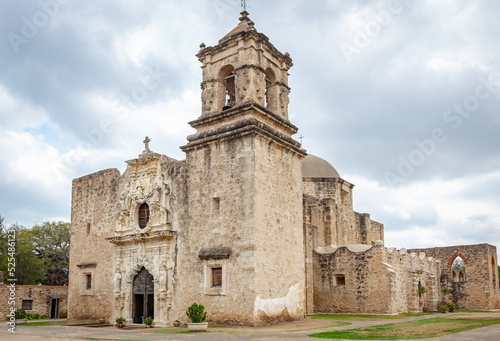 © Jacki, Fototapeta premium Historic architecture Spanish San Antonio Texas Mission San Jose on a cloudy day